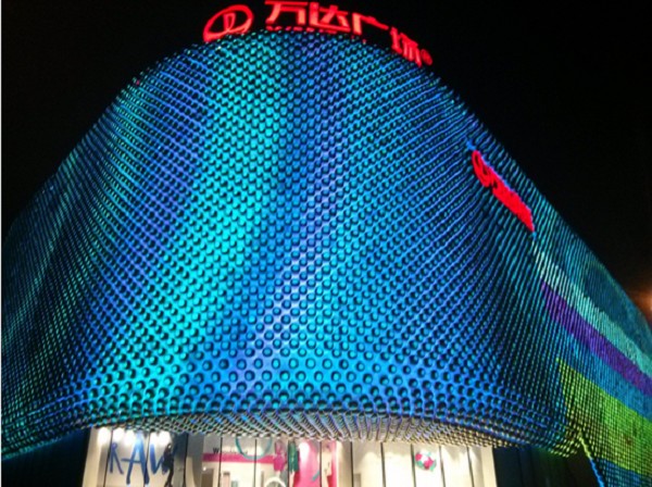武汉汉街万达广场项目被誉为万达集团旗下最奢华、最独具匠心设计、最能代表万达艺术品位和最具文化内涵的项目。项目总建筑面积13.58万平方米,外幕墙面积3.3万平方米,幕墙造价过亿。4万余个内嵌LED灯饰的不锈钢金属球和铝板幕墙构成整个建筑流畅、动感的外立面,其独特、大胆、华丽的外观设计给幕墙施工带来的非常大的挑战,许多幕墙企业望而生畏。3044永利装饰公司凭借20多年深厚的技术功底,在高难度的施工中科学规划、精心实施、稳步推进,独创菱形铝板幕墙单元技术实现钢结构与铝板及不锈钢球的单元整体吊装,加上针对双曲铝板幕墙的三维坐标测量放线等先进的安装误差控制手段,确保了施工质量、安全与进度,短短五个月成就该项目外观立面最华丽、夜景效果最绚丽等中国之最。