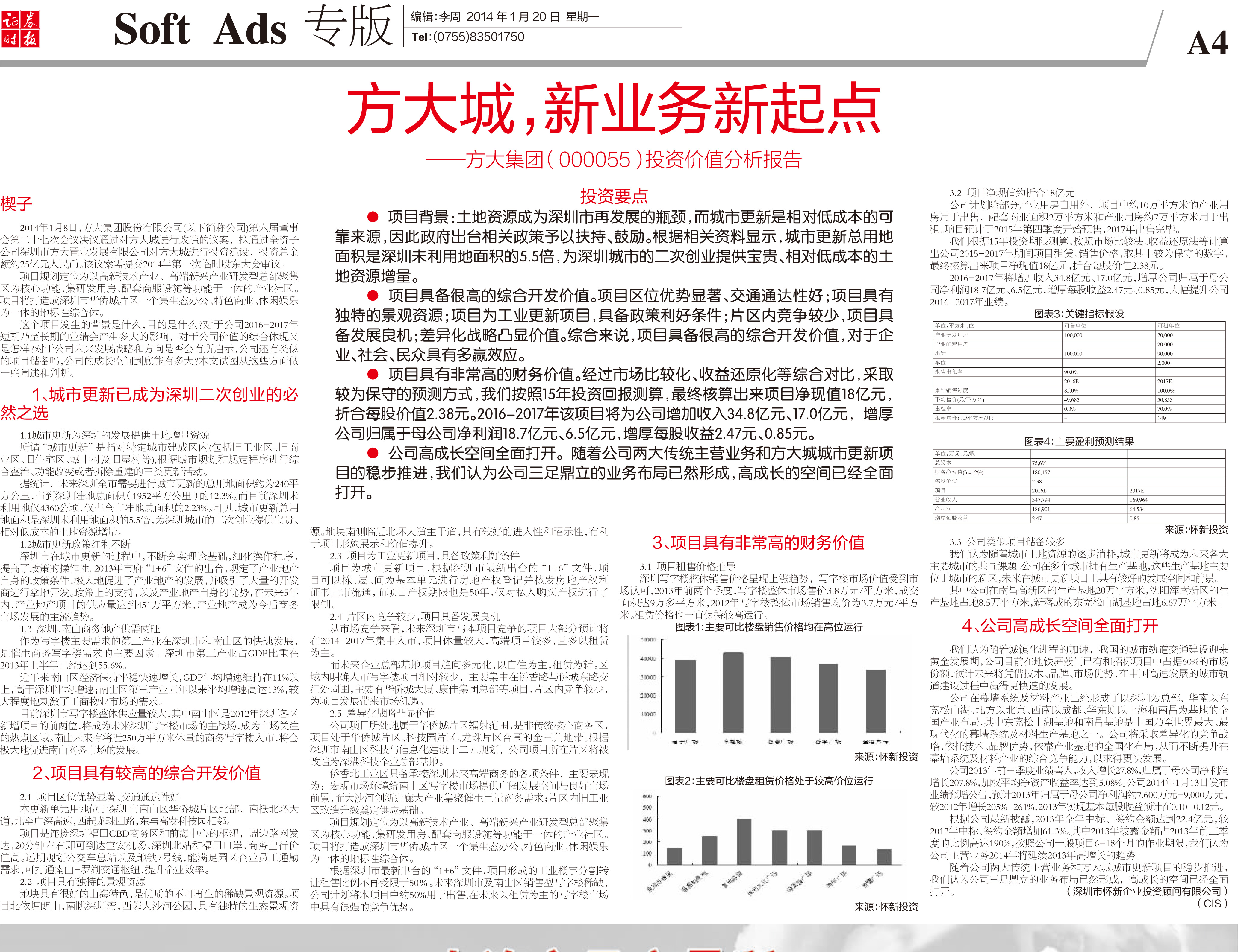 2014年1月20日《证券时报》专版大幅刊登《3044永利城,新业务新起点——3044永利投资价值分析报告》