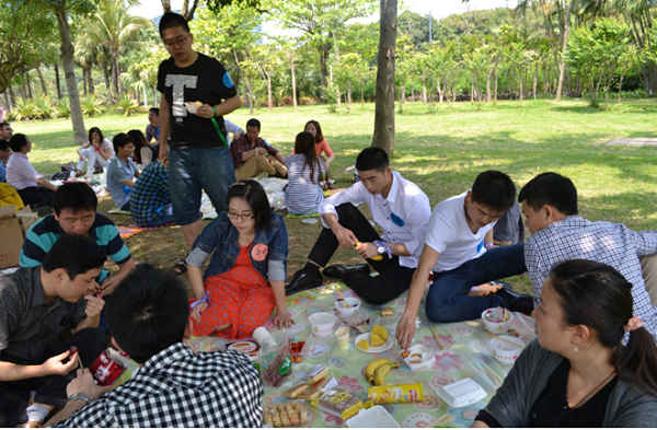活动当天,大家意兴盎然来到了深圳湾公园,通过简单的自我介绍,在5分钟时间内迅速找到自己的搭档,然后进行互相介绍,之后每个人拿出自己精心准备的食物跟大家进行分享。分享过后大家迫不及待地投入到“报纸大联盟”、“五毛一块”、“幸福彼岸”、“群魔乱舞”“电动马达臀”等游戏中。大家用歌声、舞蹈和游戏传递着快乐与情谊,进一步拉近着彼此间的距离。一个个激动人心的互动小游戏将联谊会推向高潮,一个个刁钻的惩罚方式更令人捧腹。在“报纸大联盟”、“幸福彼岸”的游戏环节中,大家踊跃参加,使出浑身解数,各显智慧,用默契的配合共同争创佳绩。游戏之后,大家进入到了最神秘的“背对背的秘密”环节,男女生各站一排,相背而坐,大家依次将自己的心意卡放进了心仪异性的信封中。最后,大家两两相约,共同踏上单车尽享初夏深圳湾的风景。整个活动中,大家热情交谈,彼此了解兴趣爱好,互留联络方式,活动之后还制作了联谊会通讯录,以便今后更好地继续交流互动。