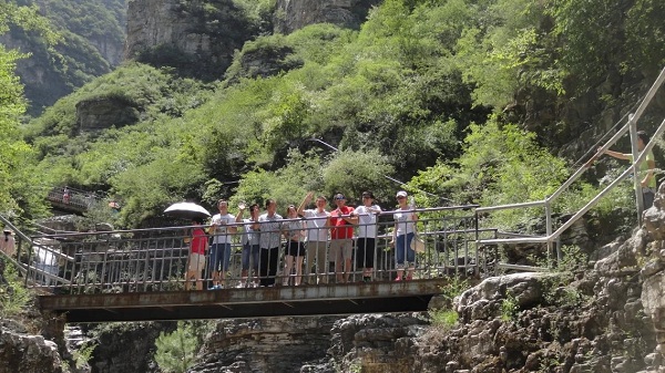 经过2个多小时的车程,北京分公司寿星们于上午9时到达十渡自然风景区,开始一天的游玩孤山寨、漂流戏水等活动。孤山寨有著名的“一线天” “山门迎客”、“仙女浴潭”、“千古河床”、“洗心潭”、“石中石”、“银川冰谷”等景观,满眼尽是赏心悦目的异石奇景。寿星们欣赏着自然风光,感叹着天地造物的神奇。远离城市的宣泄,忘记平时工作的紧张与疲惫,全心身不自觉地投入到了大自然的安静和谐之中,溪水潺潺,鸟虫低鸣,十分地惬意与舒爽,虽然是爬山观景,寿星们丝毫没有倦意。中午稍作休息,寿星们来到溪水边乘坐皮筏顺水漂流,在溪水中戏水,最后俨然变成了泼水大战,溪水打湿了衣襟,寿星们毫不介怀,溪水之上留下了阵阵欢快的笑声。
