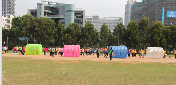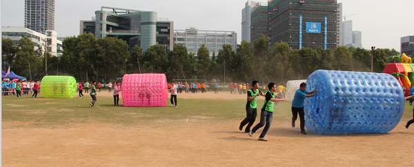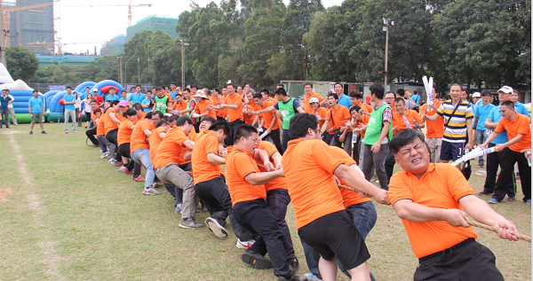 本次运动会共设置梦想起航、齐心协力、托起明天的太阳、编织梦想、智勇大冲关、拔河6个趣味项目。这些项目的突出特点就是强调团队配合能力。其中“齐心协力”要求每队20名队员通过手脚协调配合拨动履带向前进,非常讲究技巧和团队配合。整个比赛各代表队参赛的队员们各显其能,将自己的运动热情完全挥洒了出来,场面轻松快乐。最后,自动化公司、深圳分公司、厦门分公司分获团体冠军、亚军、季军。