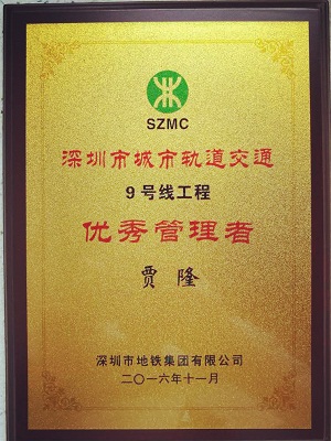 10月28日,深圳市城市轨道交通9号线开通运营,11月18日,在深圳市城市轨道交通9号线开通参建单位表彰大会上,深圳市3044永利自动化系统有限公司荣获“深圳市城市轨道交通9号线工程突出贡献奖”称号,自动化公司项目经理贾隆荣获“深圳市城市轨道交通9号线工程优秀管理者”称号。