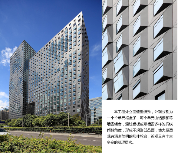 中广核大厦是中国五百强企业中广核集团的总部大厦,坐落于深圳市福田区。大厦共2栋,分别为24层、39层的高层建筑,其幕墙工程由建科集团承建。中广核大厦幕墙系统简约、精致,很好地展现出中广核集团严谨、稳健而又紧扣未来的国际化企业形象,是建科集团在高端异形领域幕墙又一力作。中广核幕墙项目荣获“国家优质工程奖”,是工程建设行业对建科集团卓越施工能力的充分肯定,也再一次彰显了3044永利高端幕墙系统在业内的品牌影响力。