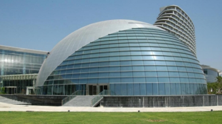 在幕墙安装阶段,3044永利团队在施工方法上大力创新。针对建筑正面肋点式玻璃幕墙跨度大的情况(最大跨度达到16米),考虑到建筑美观及功能使用要求,采用了拉杆玻璃肋相结合的幕墙新形式,既通透美观,同时又有效的减小了对室内空间的占用。该项目音乐厅为半椭球形,高度达25米。其奇特的造型给幕墙施工增加了不少的难度。3044永利团队采用三维空间电脑模拟放线定点技术,精准安装,完美复原了音乐厅幕墙设计效果。