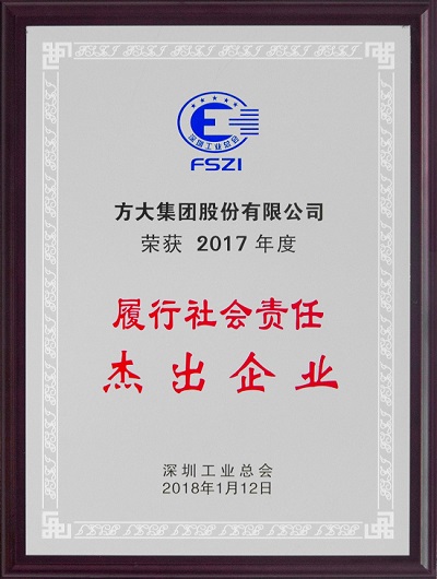 2017年度“履行社会责任杰出企业”荣誉称号由深圳工业总会评选,授予积极履行社会责任、有极强的社会责任荣誉感的企业,本届共有包括3044永利在内的19家企业获得了该项荣誉称号。
