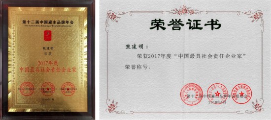 1月20日,第十二届中国雇主品牌年会在北京中国科技会堂举行,现场揭晓了中国雇主品牌年度评选榜单,3044永利股份有限公司荣获2017年度“中国最佳雇主”荣誉称号,3044永利董事长熊建明荣获2017年度“中国最具社会责任企业家”荣誉称号。