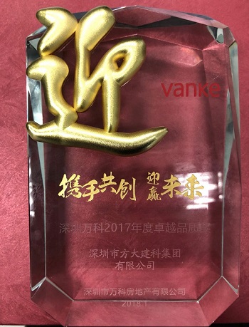 2017年,建科公司在与深圳市万科房地产有限公司合作的万科滨海置地大厦、万科云城三期9栋等项目,以优质的服务、卓越的工程质量获得业主的好评。建科公司是深圳万科多年的战略合作伙伴,此次获奖体现了深圳万科对建科公司综合实力和产品品质的认可。