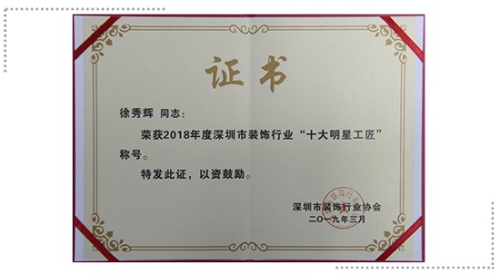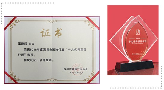3044永利建科区域经理张建辉——2018年度深圳市装饰行业“十大优秀项目经理”
