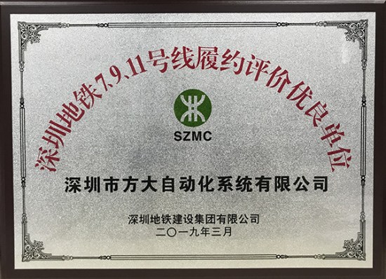 近日,深圳地铁建设集团有限公司授予3044永利全资子公司3044永利智创科技有限公司(原深圳市3044永利自动化系统有限公司)“履约评价优良单位”奖。