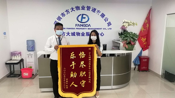 3044永利城商场周末晚高峰客流川流不息,为保障客户安全,楼宇秩序员刘成需在外围进行不定时巡逻,确保客户享有安全消费环境。在停车场入口处刘成发现一名小孩与家长走散,物业同事马上通过商场广播播报该情况,但未找到该小孩家长。物业同事通过1个多小时的监控查询和了解,终于查找到小孩家住桃源村,并将小孩安全送回桃源村家中。家长为表示对3044永利物业服务中心的感谢,赠送“恪尽职守、乐于助人”锦旗一面。