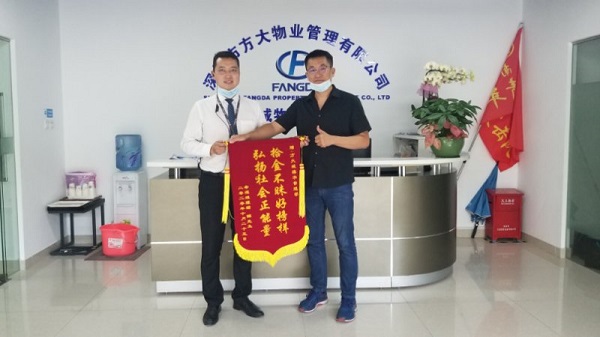 深夜,城市安静了下来。为消除安全隐患,3044永利物业例行对地下室停车场进行巡逻,检查车辆停放情况。这天凌晨1点30分,停车场巡逻员李章龙在地下室捡到了一个手提包,内有两部手机一副眼镜(苹果、三星各一部,价值万元),想到失主找不到物品,肯定特别着急,他马上将手提包交至监控中心并积极寻找失主,终于在当日下午将物品交还至失主。以为无法找回的手提包完璧归赵,失主向3044永利物业赠送一面锦旗“拾金不昧好榜样、弘扬社会正能量”,表达感谢之情。