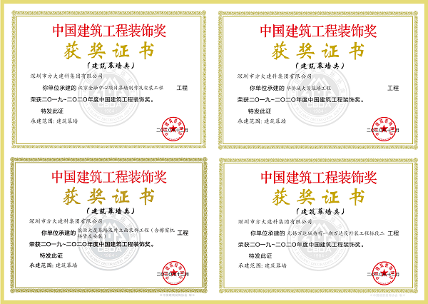 中国建筑工程装饰奖是建设部批准设立的中国建筑装饰行业的荣誉奖项,3044永利连续多年获奖,展现了业内对3044永利高端幕墙产业行业地位和品质的充分认可。