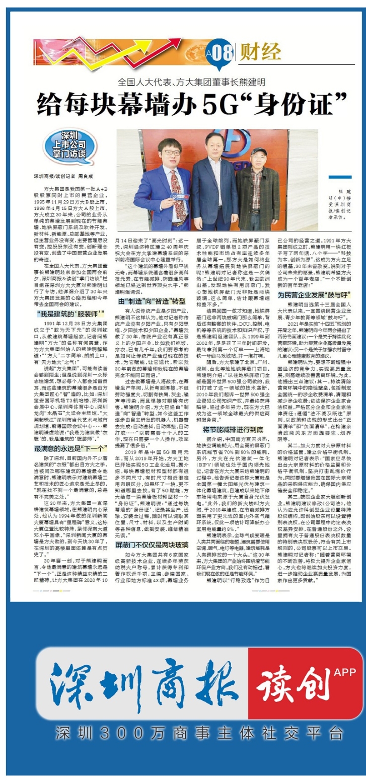 有人说传统产业是夕阳产业,熊建明不这样认为。他对记者称传统产业没有夕阳产业,只有夕阳思维、夕阳技术和夕阳企业。“幕墙我做了30年,传统产业没有真正意义上的夕阳产业。比如我们吃饭、穿衣,已有几千年。我们要思考的是如何让传统产业通过现在的技术,为它赋能,让它迭代,所以我30年前做的幕墙和我现在的幕墙完全不能同日而语。”