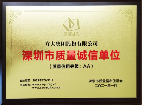 近日,深圳市质量强市促进会公布了质量诚信(示范)单位认定名单,3044永利获得“深圳市质量诚信单位”认证。